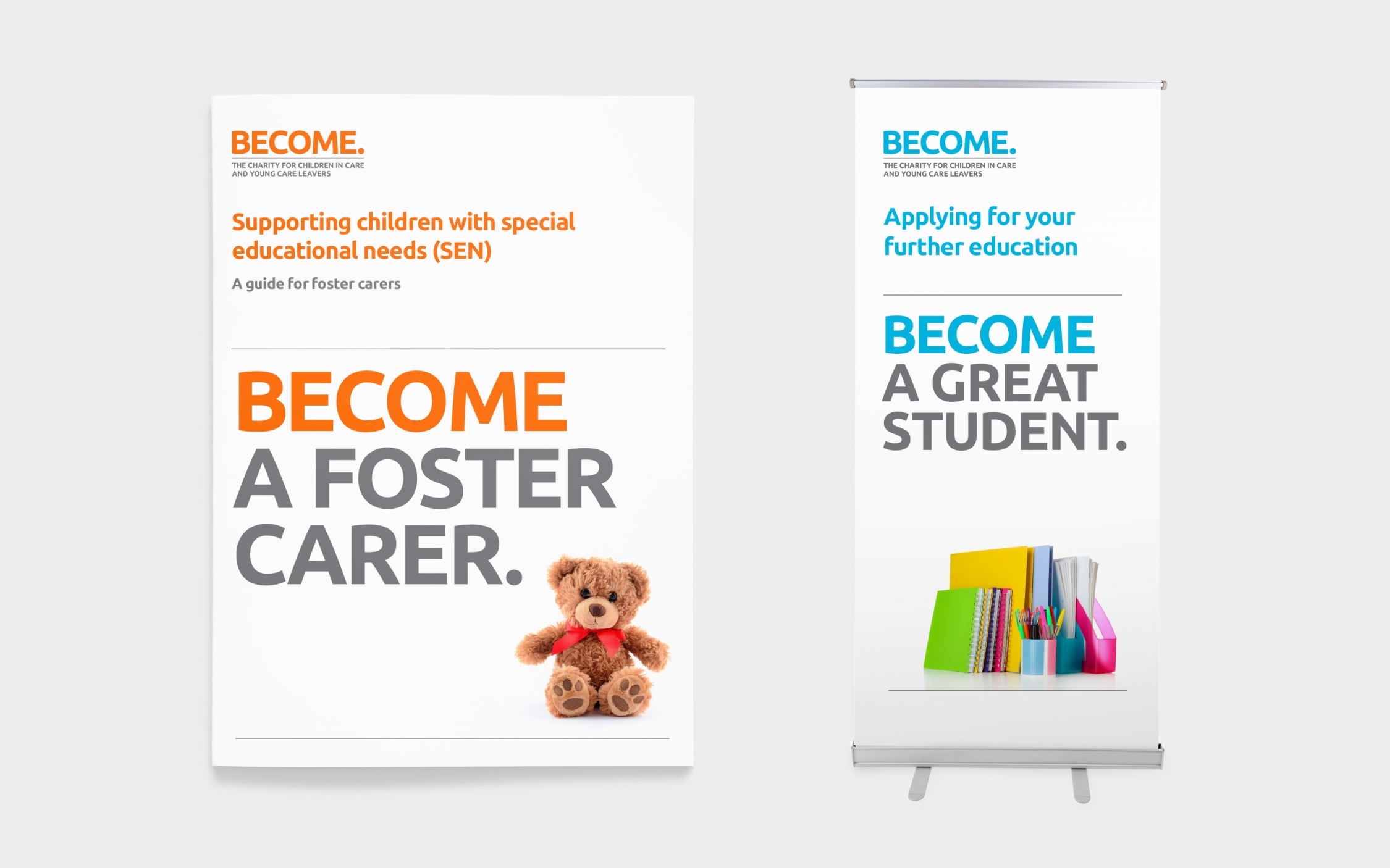 The brand emphasises that with real support children in care can become who they want to be. Aspirational copy linked with the charity’s name communicates Become’s inspiring vision and purpose.